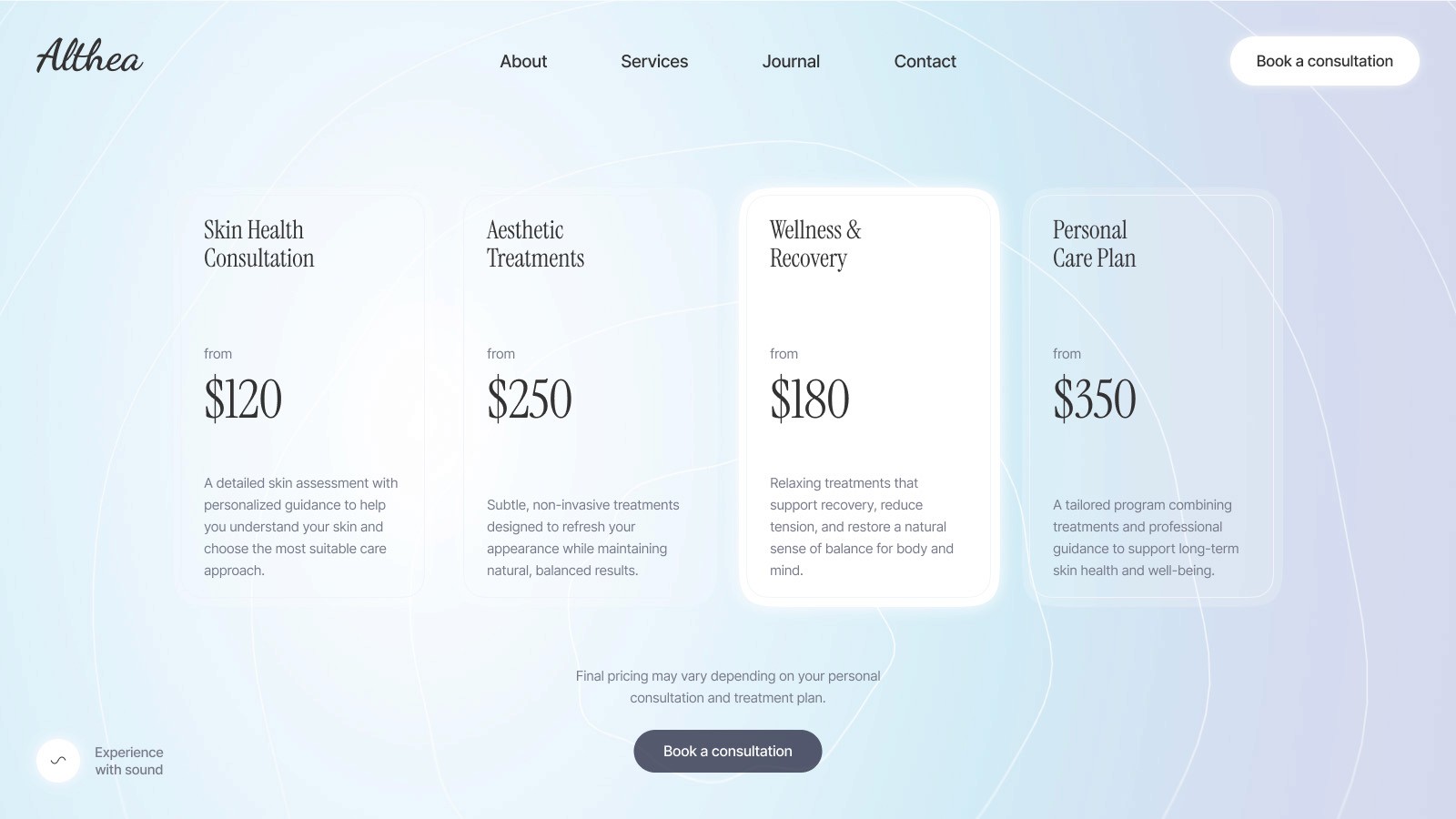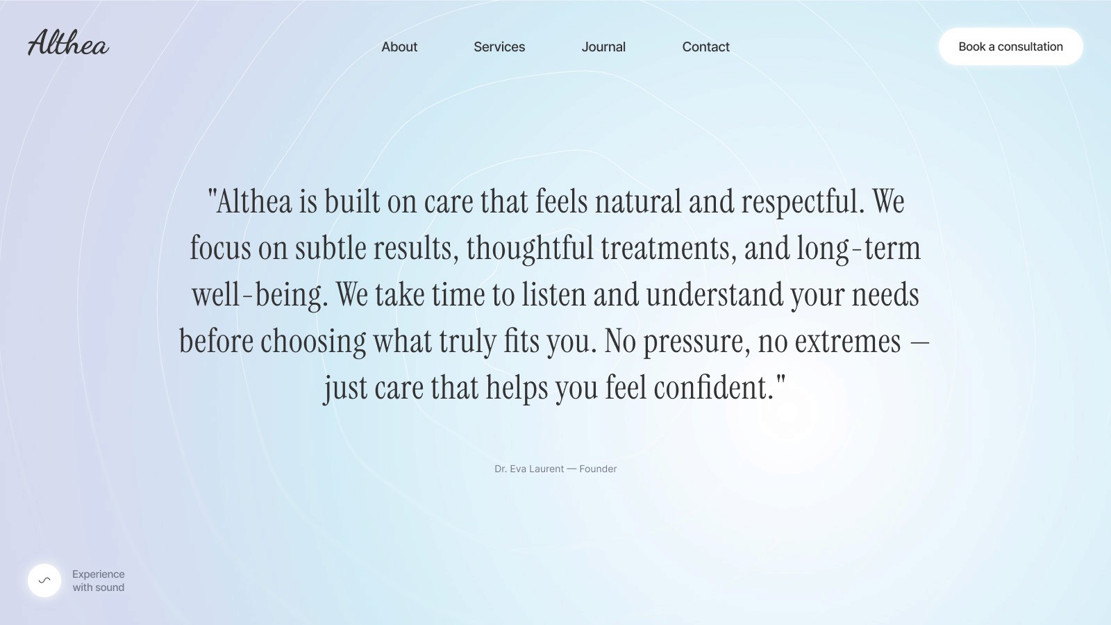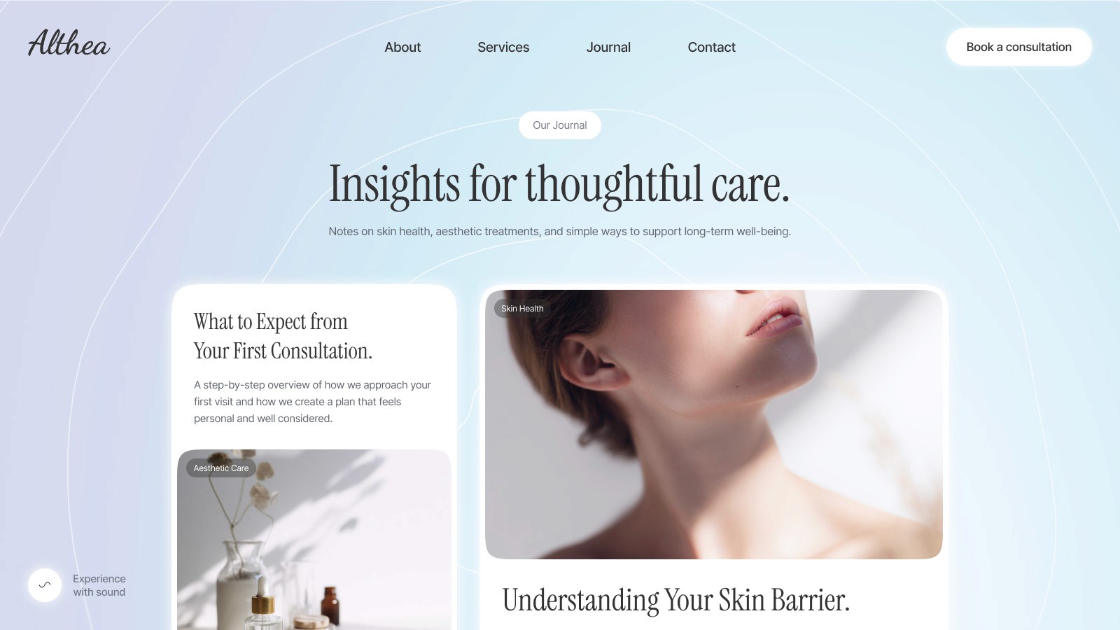 Whether you’re presenting aesthetic services, sharing insights through a journal, or inviting clients to book a consultation, Althea offers a balanced and professional online presence.
